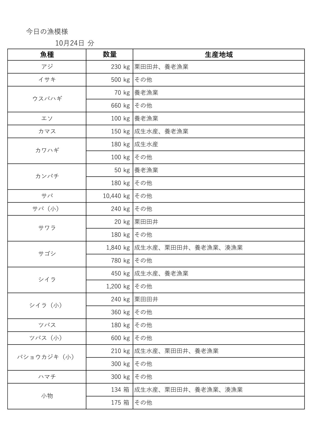 漁模様(10月24日)