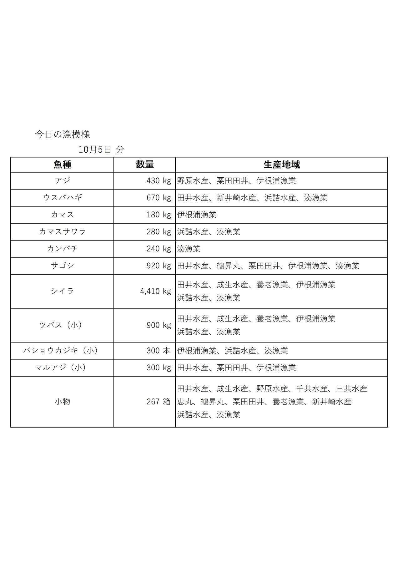 漁模様(10月5日,10月6日)