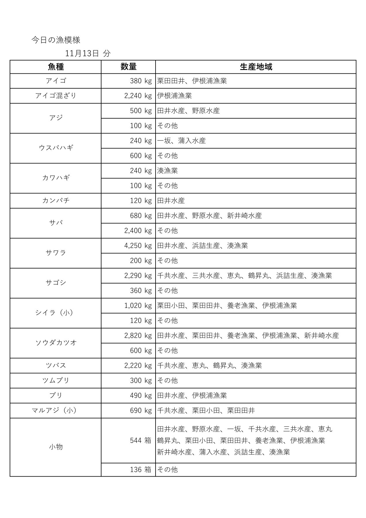 漁模様(11月13日)