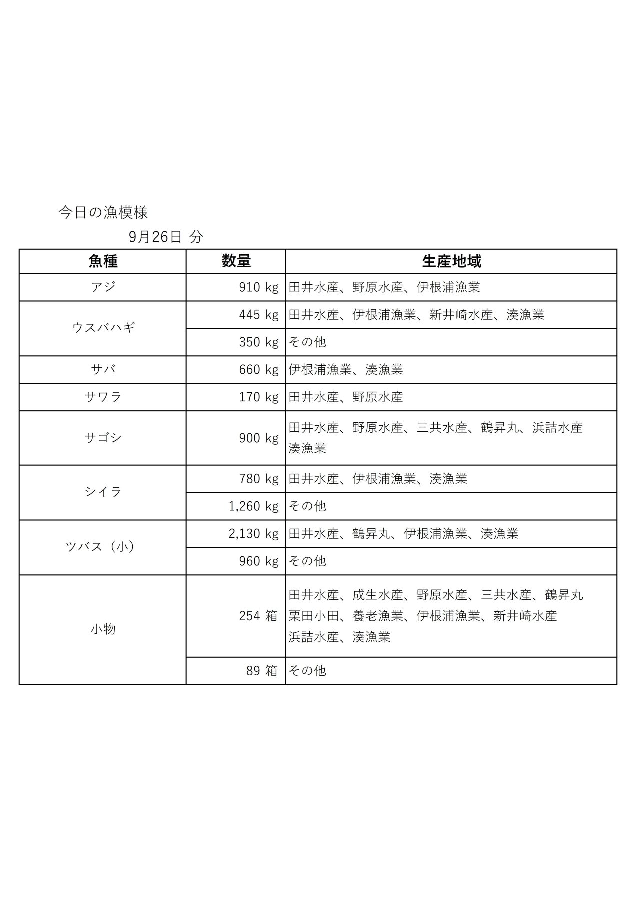 漁模様(9月26日)